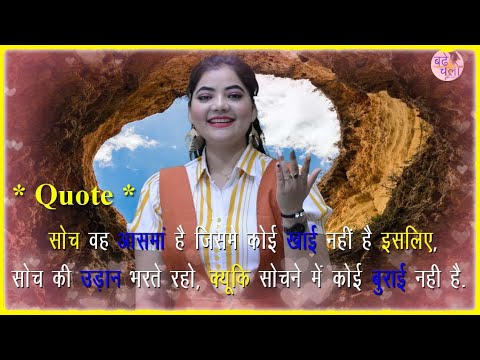 “सोच वह आसमां है जिसमे कोई खाई नहीं है इसलिए,सोच की उड़न भरते रहो, क्यूकि सोचने में कोई बुराई नही है.” एक प्रेरक विचार है जो बढ़े चलो प्रेरक पत्रिका में प्रकाशित हुआ है। इस प्रेरक विचार को लिखा है “राजेश आर्य”ने जो बढ़े चलो पत्रिका के संपादक है। इस कविता को गाया है तनूजा ने, साथ ही इस पर अभिनय भी तनूजा ने किया है | तनूजा बढ़े चलो पत्रिका की मॉडल ( Model )और ब्रांड एंबेसडर (brand ambassador) है